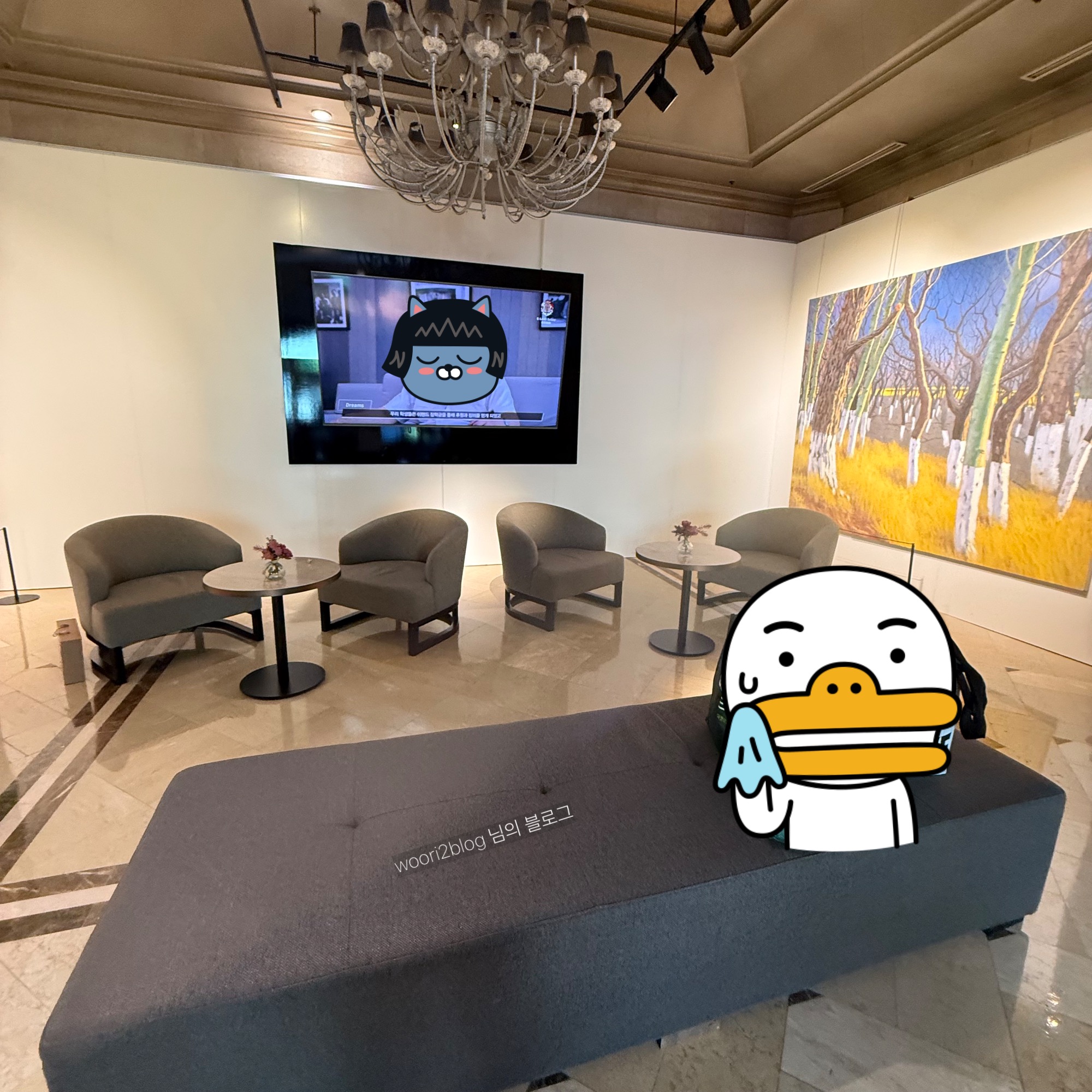 왼쪽에는 쇼파와 테이블 들이 있어서