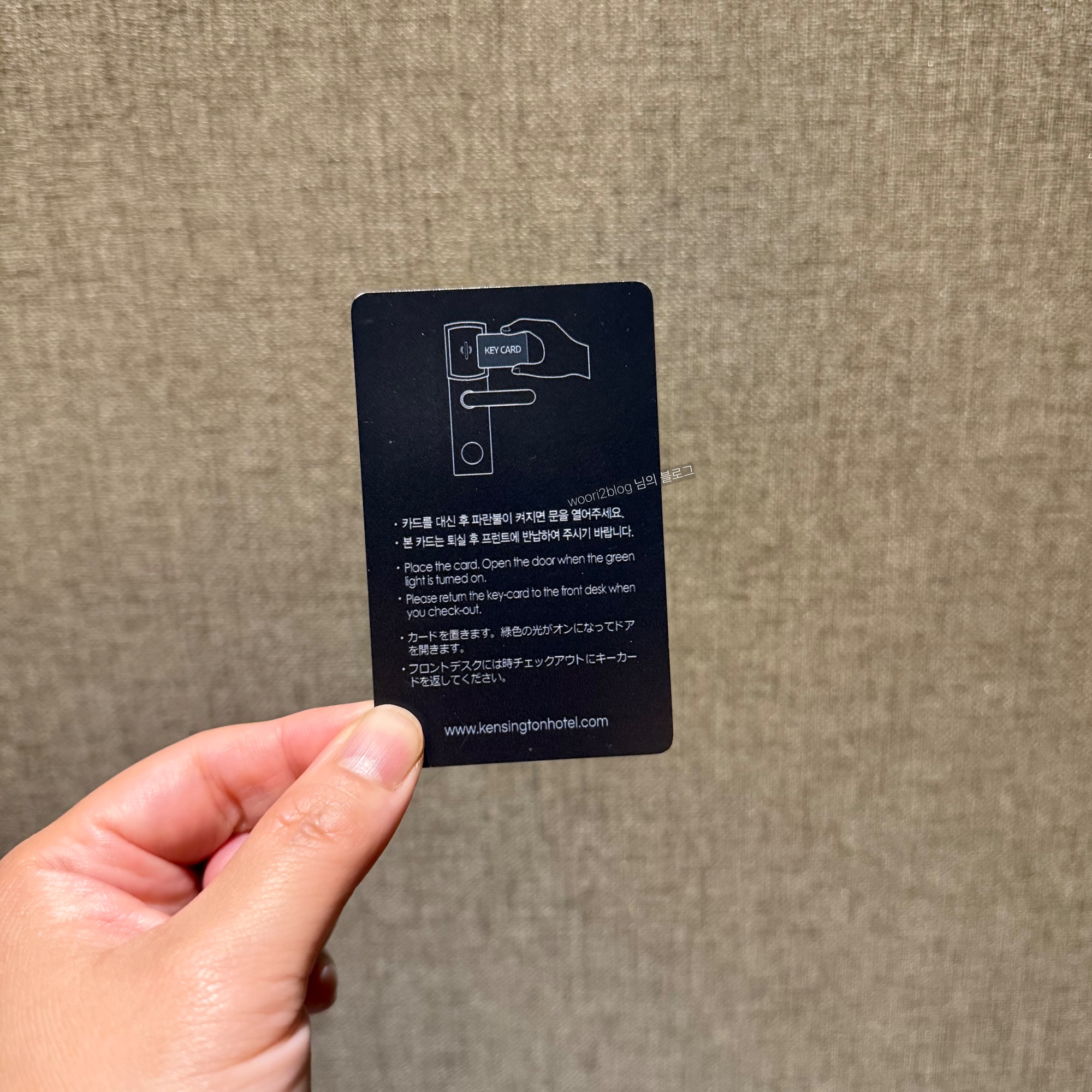 객실키 뒷편에는 어떻게 사용하고 반납하는 지 쓰여있어요.