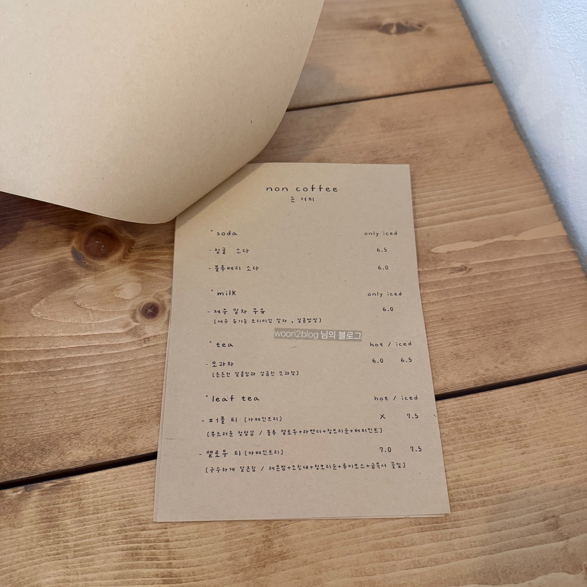 테이블 마다 ‘메뉴판’이 있어