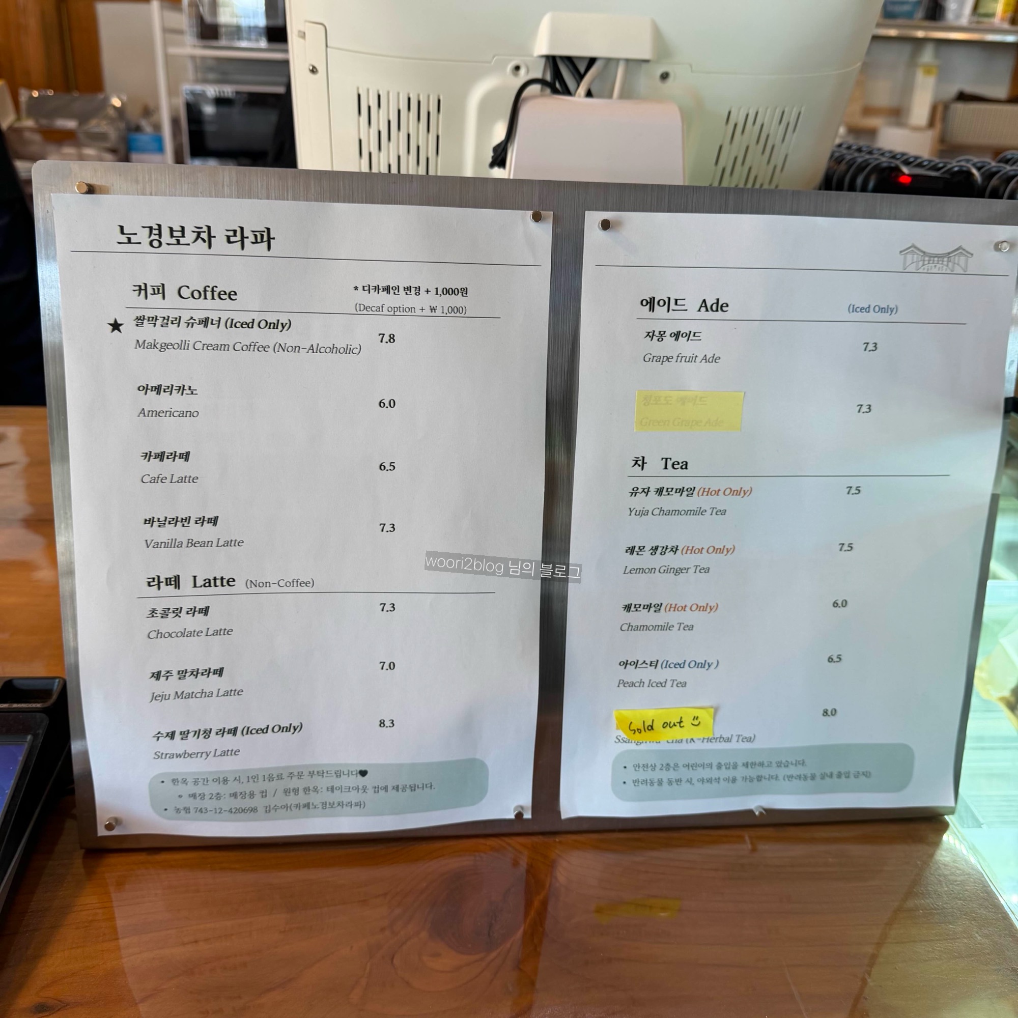 2층 구경하고 오니 음료가 나왔고