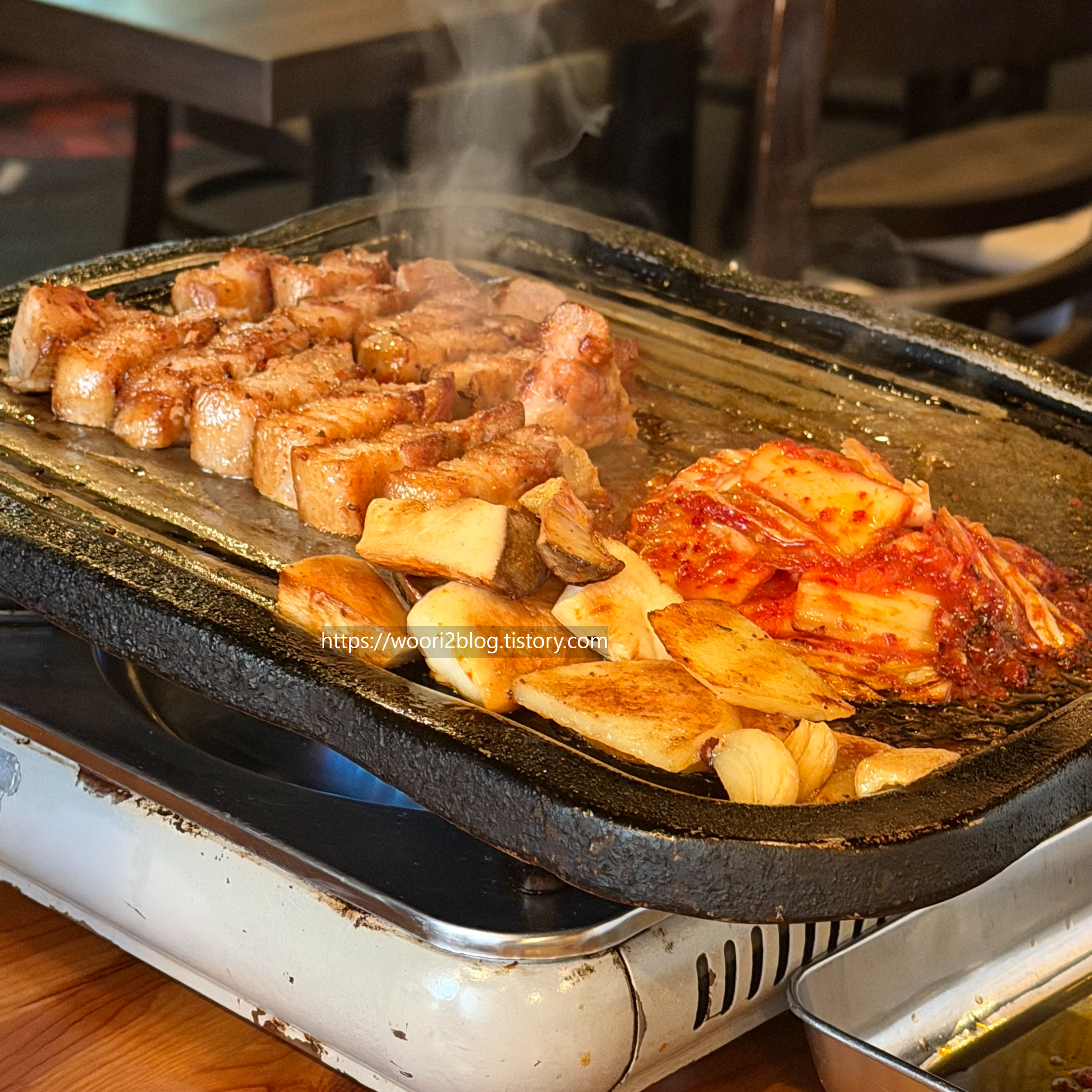 한식당에서 삼겹살세트를 먹었어요.
