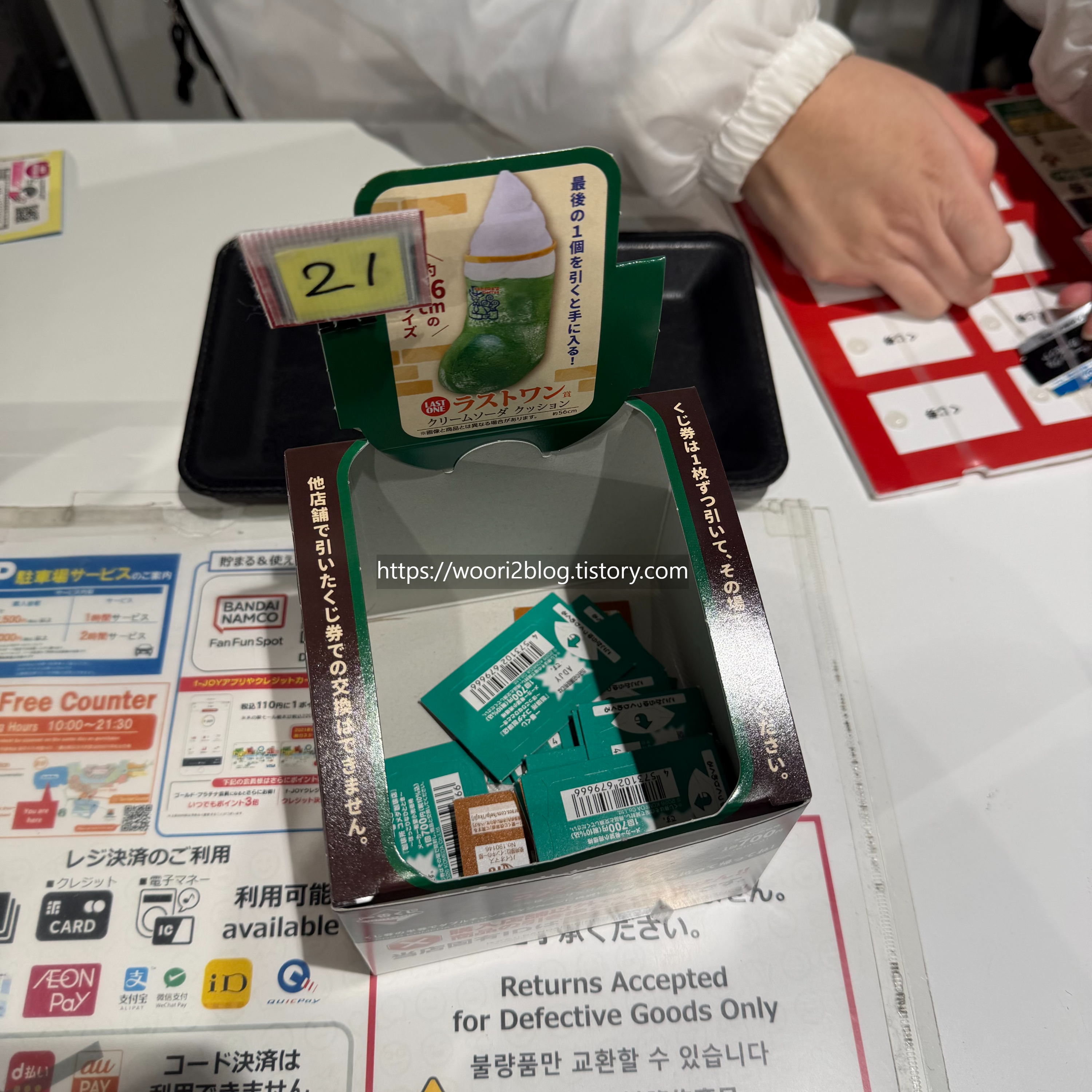계산한 뒤 뒤쪽에 있던 뽑기통을 주세요.