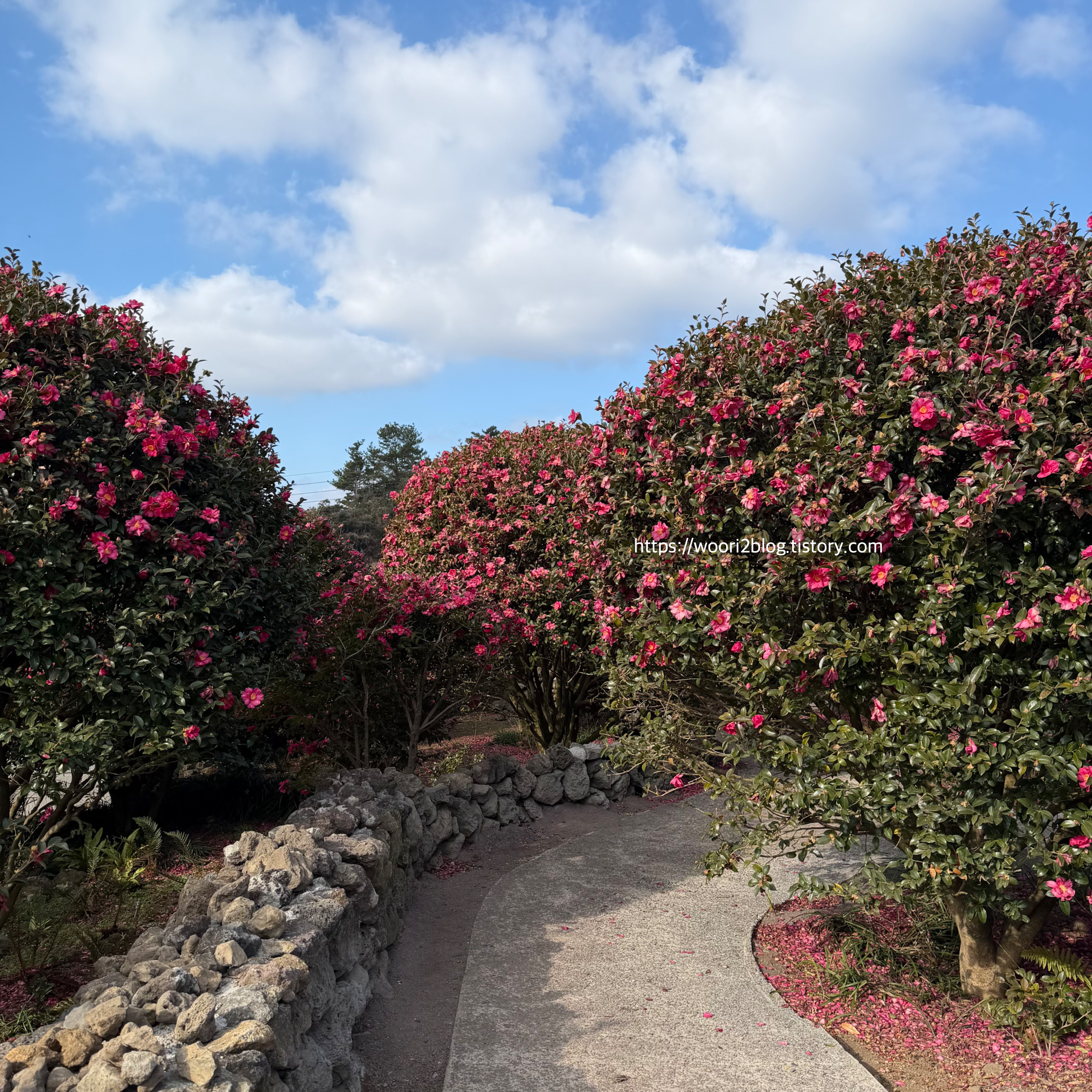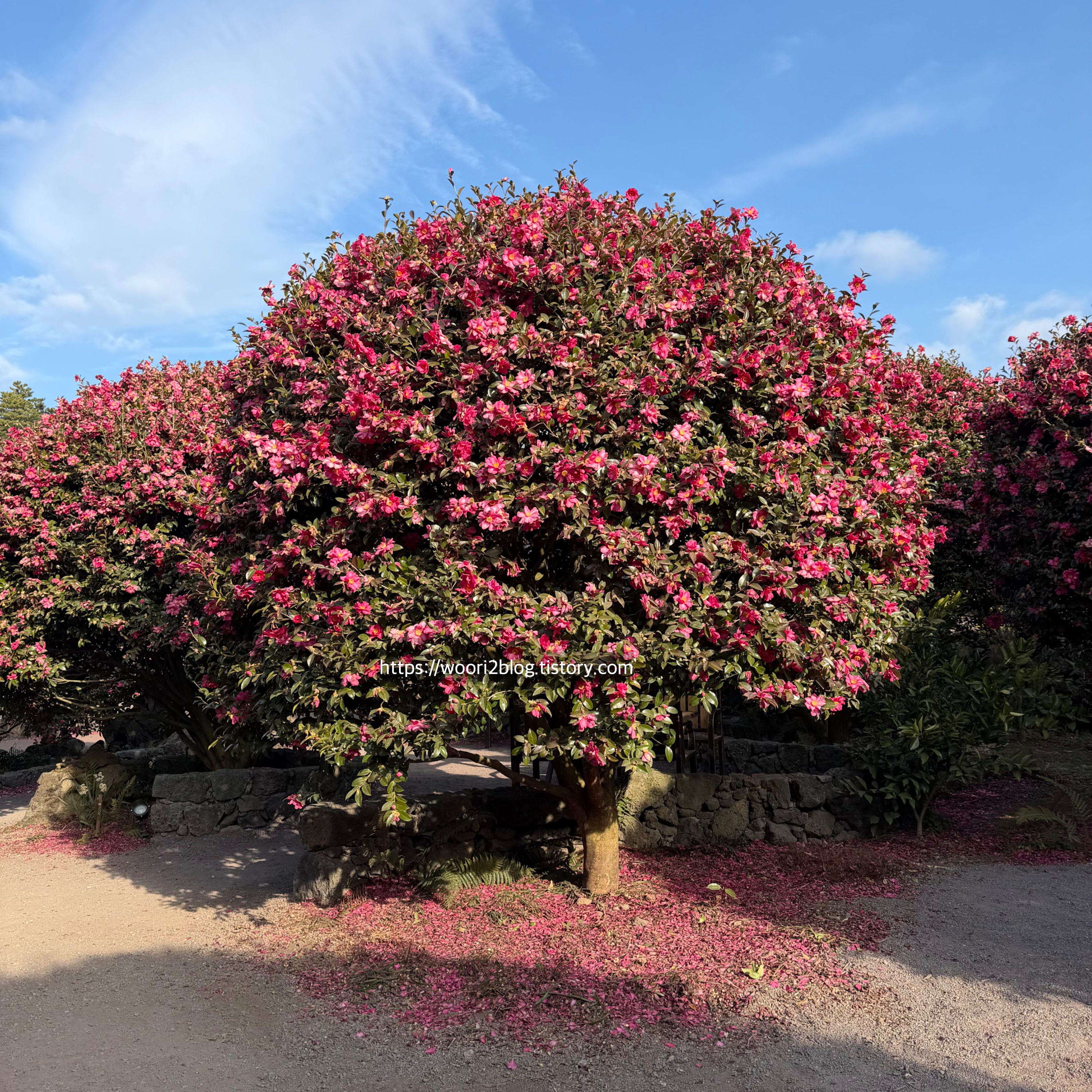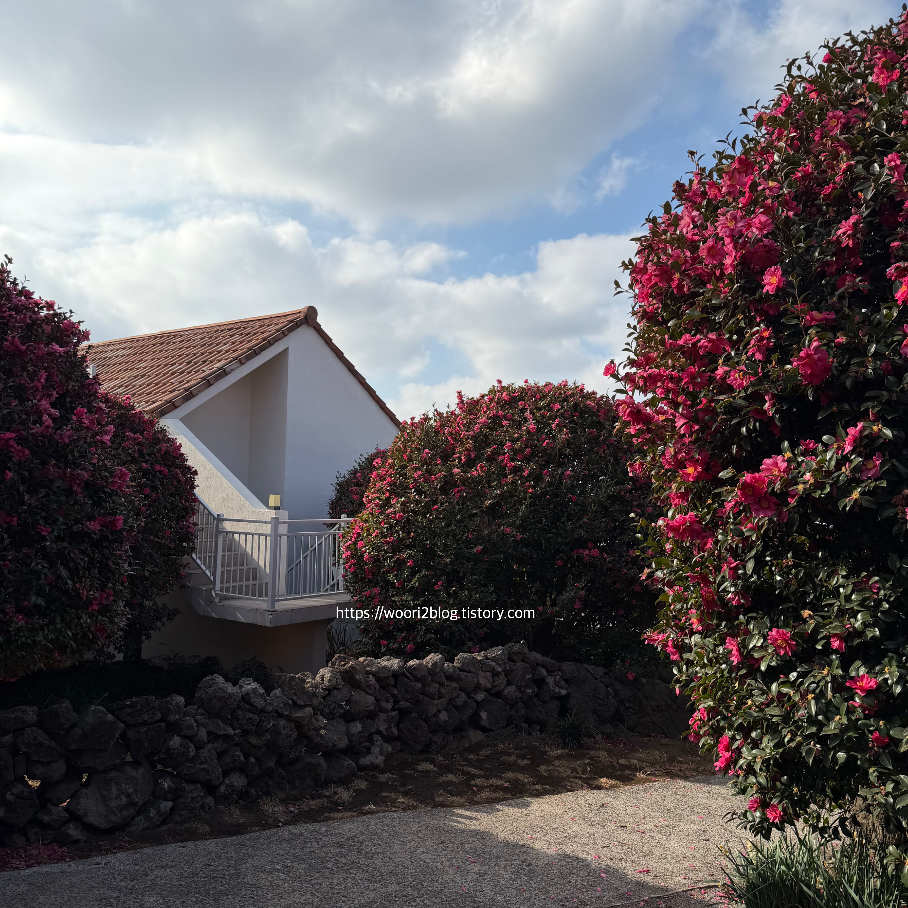 주차장 가려다 돌담에서 본 동백도 예뻤어요ㅋㅋ