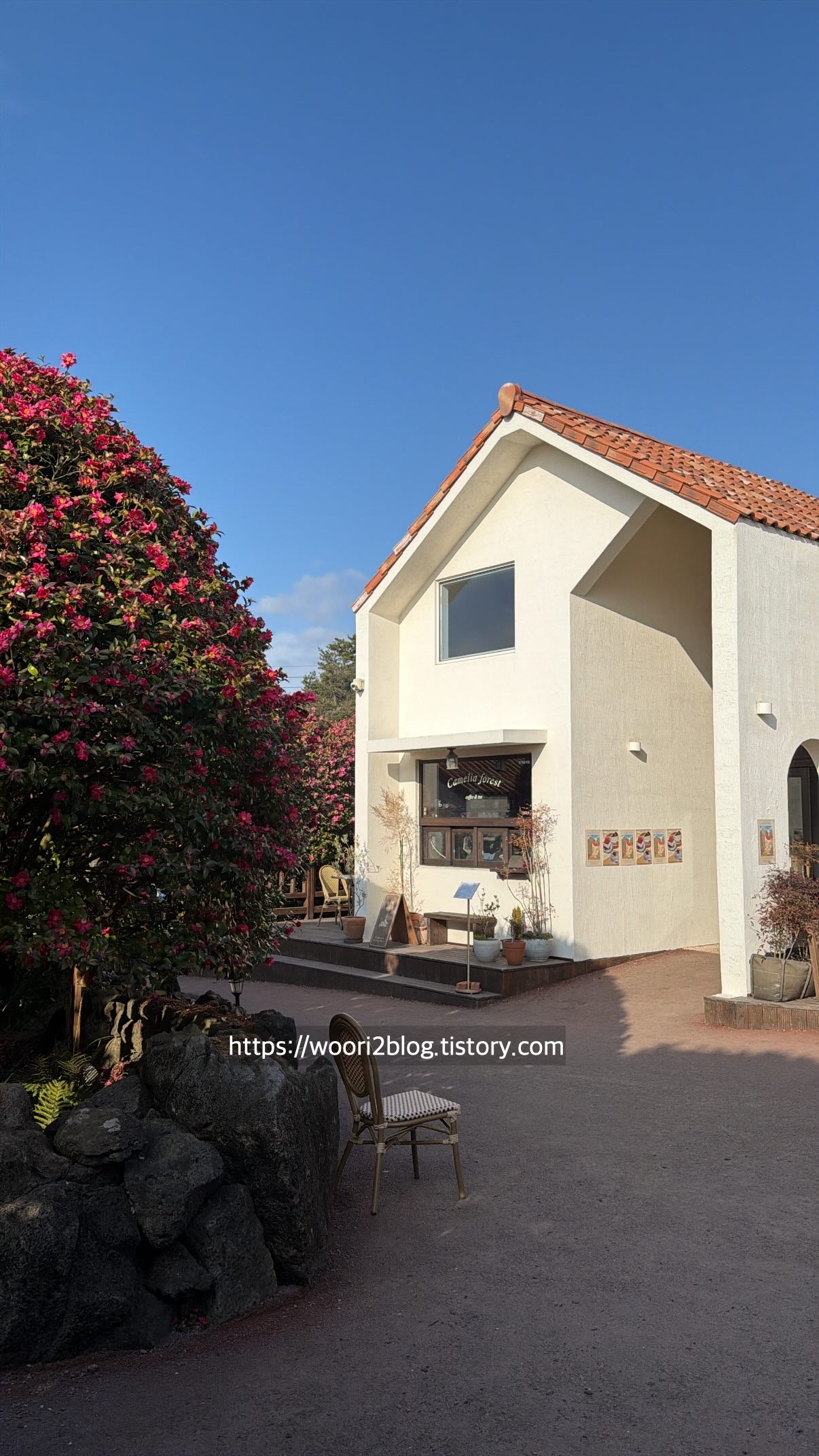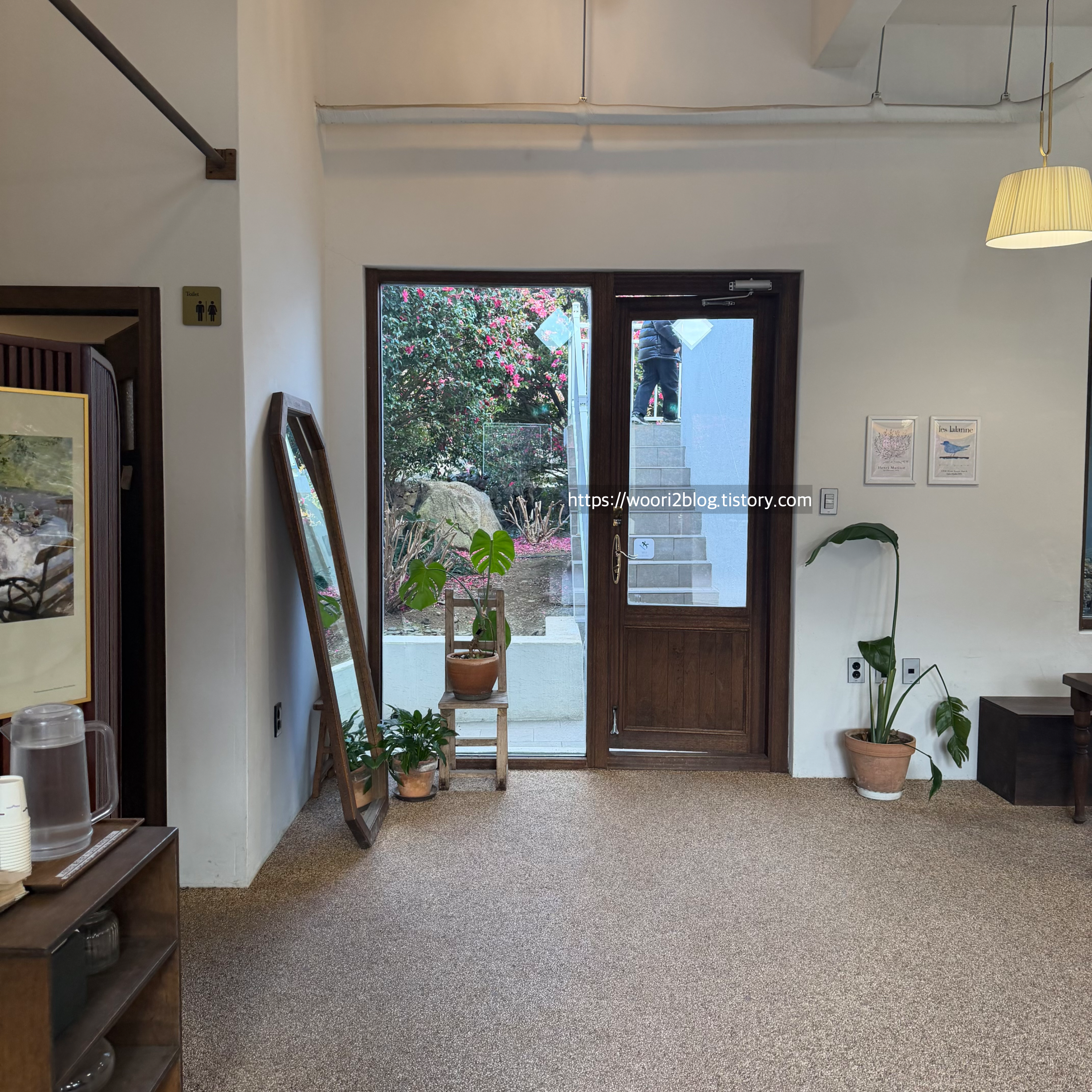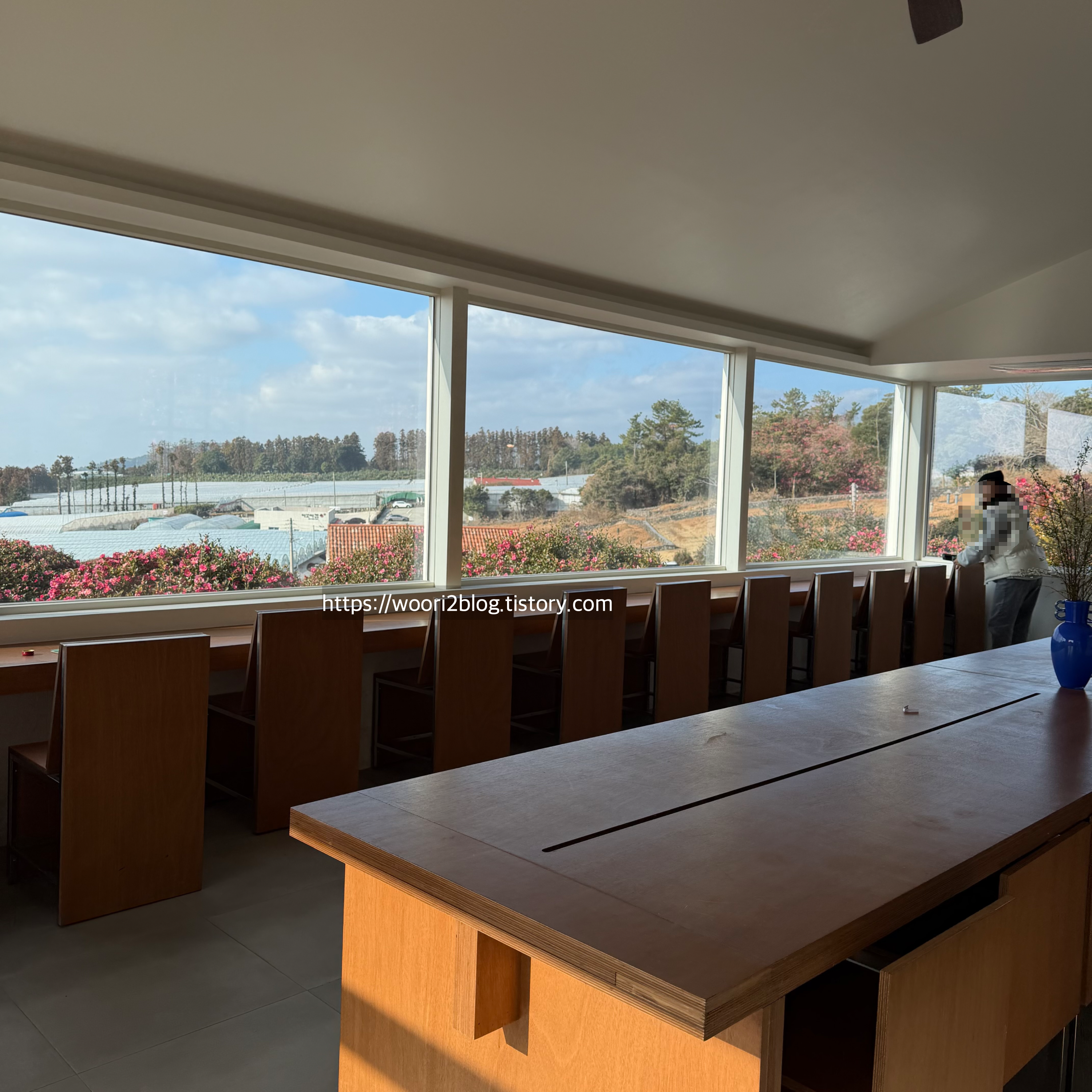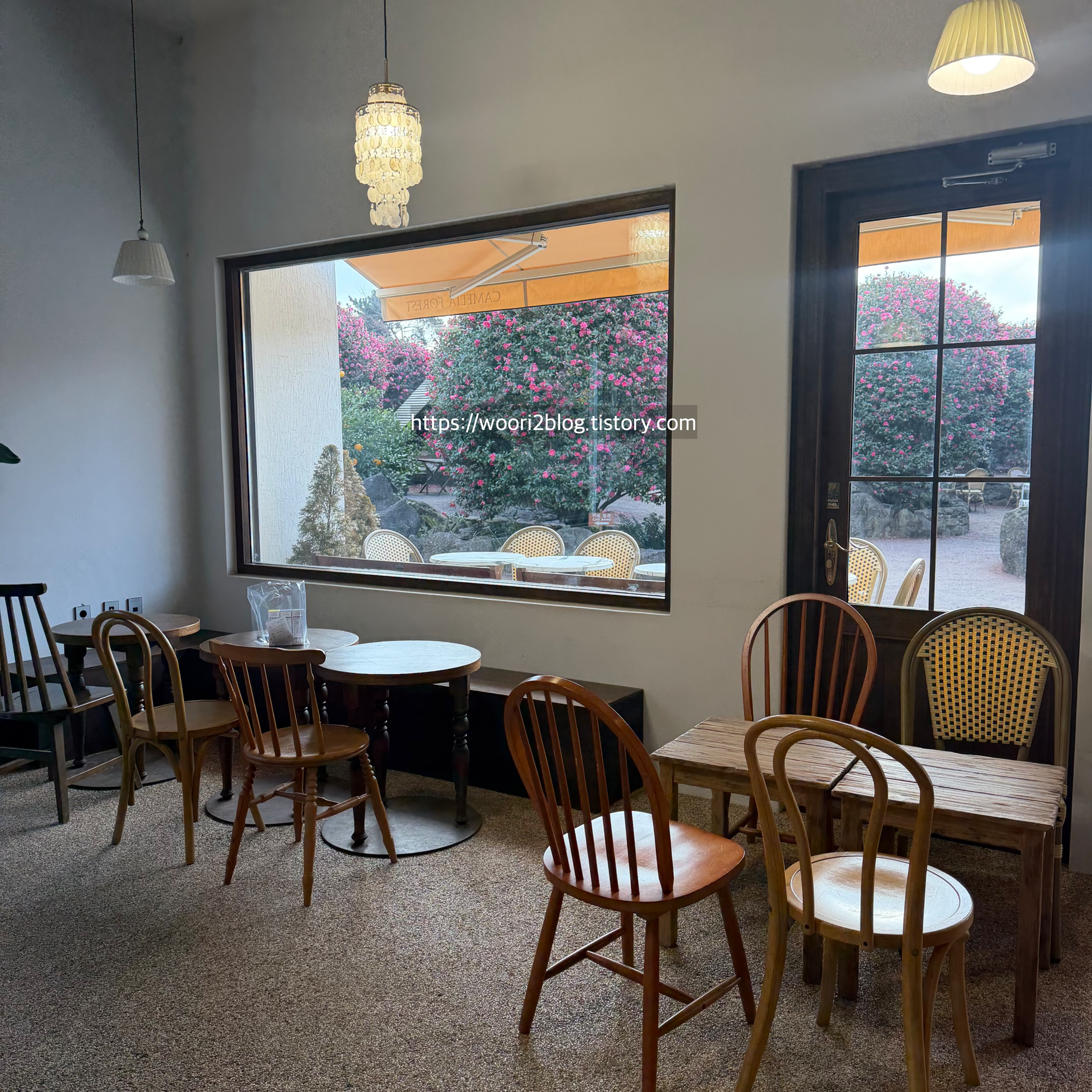 창가에 동백꽃이 보여 너무 예뻤어요.