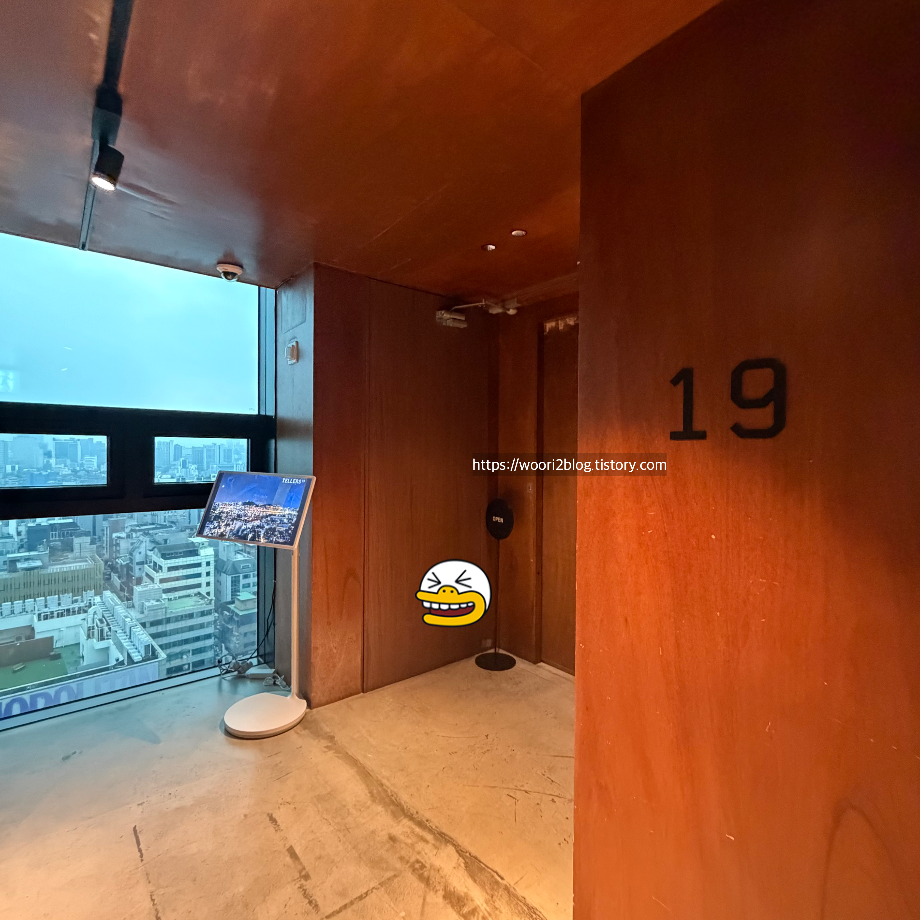 엘리베이터를 타고 19층까지 올라가면 되요.